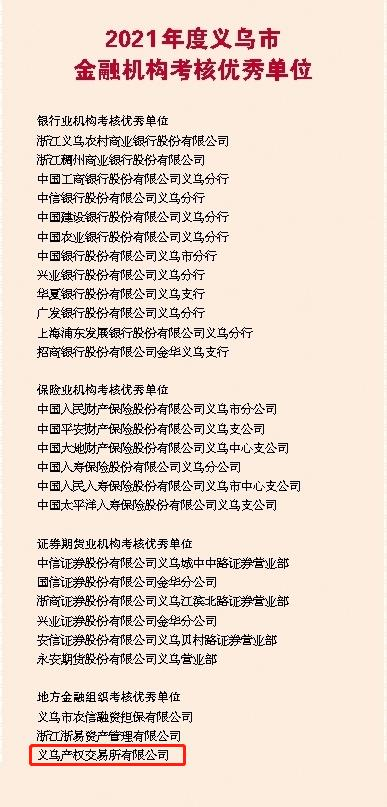 义乌产权交易所荣获“2021年度义乌市金融机构考核优秀单位”荣誉